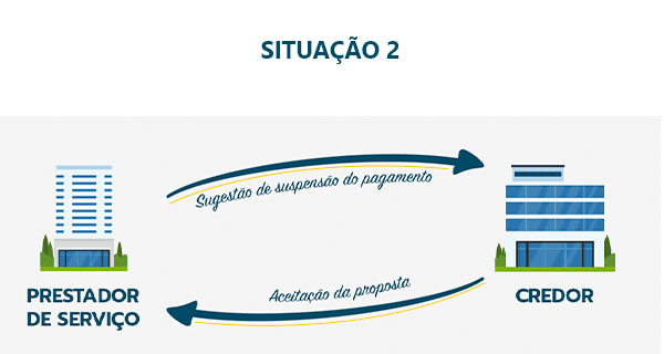 Um tomador de serviço prestado de forma contínua, com pagamentos mensais, solicitou ao credor a suspensão do pagamento no mês de abril, primeiro mês após a determinação de isolamento social, com retomada dos pagamentos já a partir de maio, sem qualquer solução de continuidade na prestação do serviço. O credor aceitou a proposta.